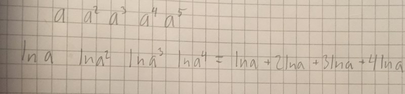 Byt ut ln(a) till x. Det är ändå bara en siffra.  Då står det x + 2x +3x... Ta en högre minus en lägre. Hur stor blir skillnaden?