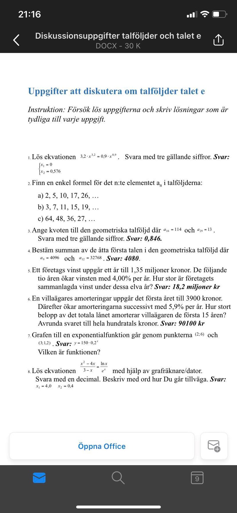 Jag skulle behöva ha hjälp med uträkningar på 4 och neråt, har försökt komma fram till svar men inte lyckats.