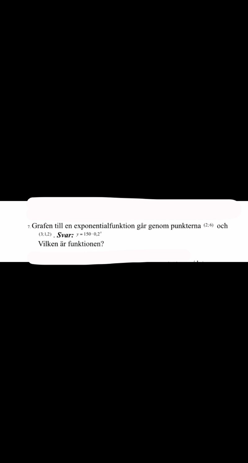 En exponentialfunktion kan skrivas på formen . Sätt in de givna värdena för varje punkt i ekvationen, så får du ett ekvationssystem. :)