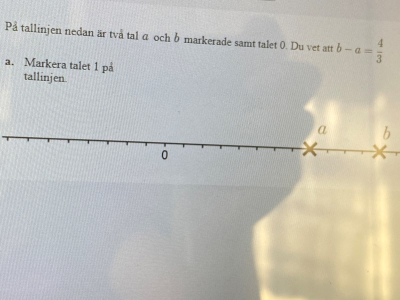 Om avståndet mellan a och b är 4/3, hur långt är avståndet mellan två streck?