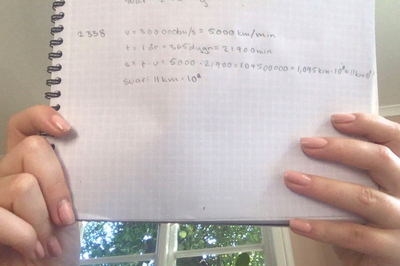 Ett ljusår är sträckan som ljuset färdas i vakuum under ett år. Ljusets hastighet är ungefär 300 000km/s. Hur många kilometer är ett ljusår? Svara i grundpotensform.