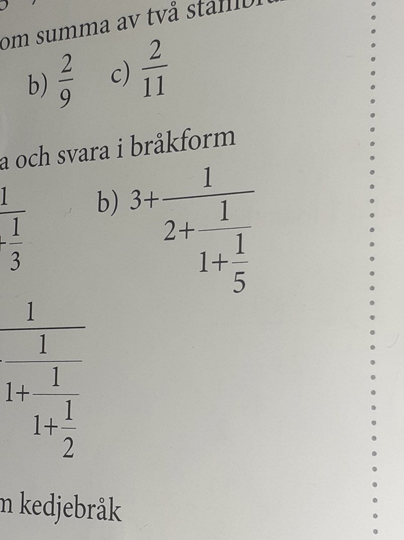 så får jag ej grepp med att lösa den här uppgiften och dessutom så är jag osäker vad kedjebråk är. Skulle verkligen uppskatta om någon kan hjälpa mig.