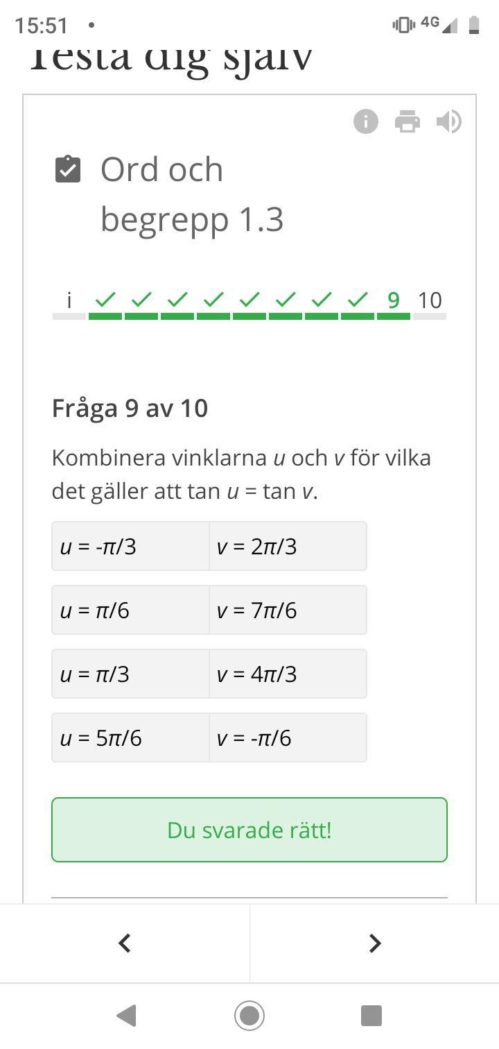Det står att jag "svarade rätt" men vissa alternativ var bara gissning tyvärr