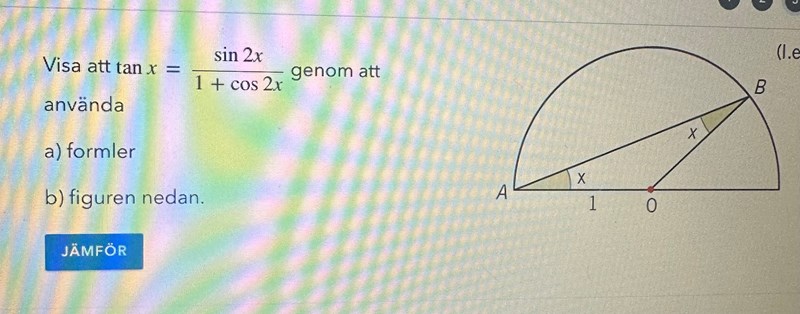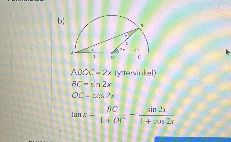 För att det är tan(x) och inte tan(2x) enligt figur. Därför är närliggande katet = 1+sträckan OC.