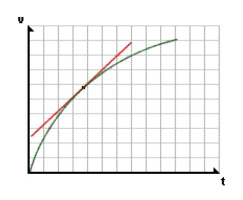 Nej, om du fått att du exempelvis ska räkna ut momentanacceleration vid en viss tidpunkt kan din tangent se ut såhär:
