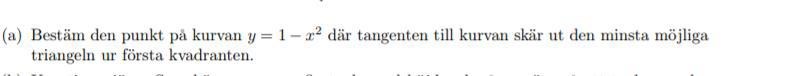 , fråga är bara, hur ska man hitta en tangent som utgör den minsta triangeln?