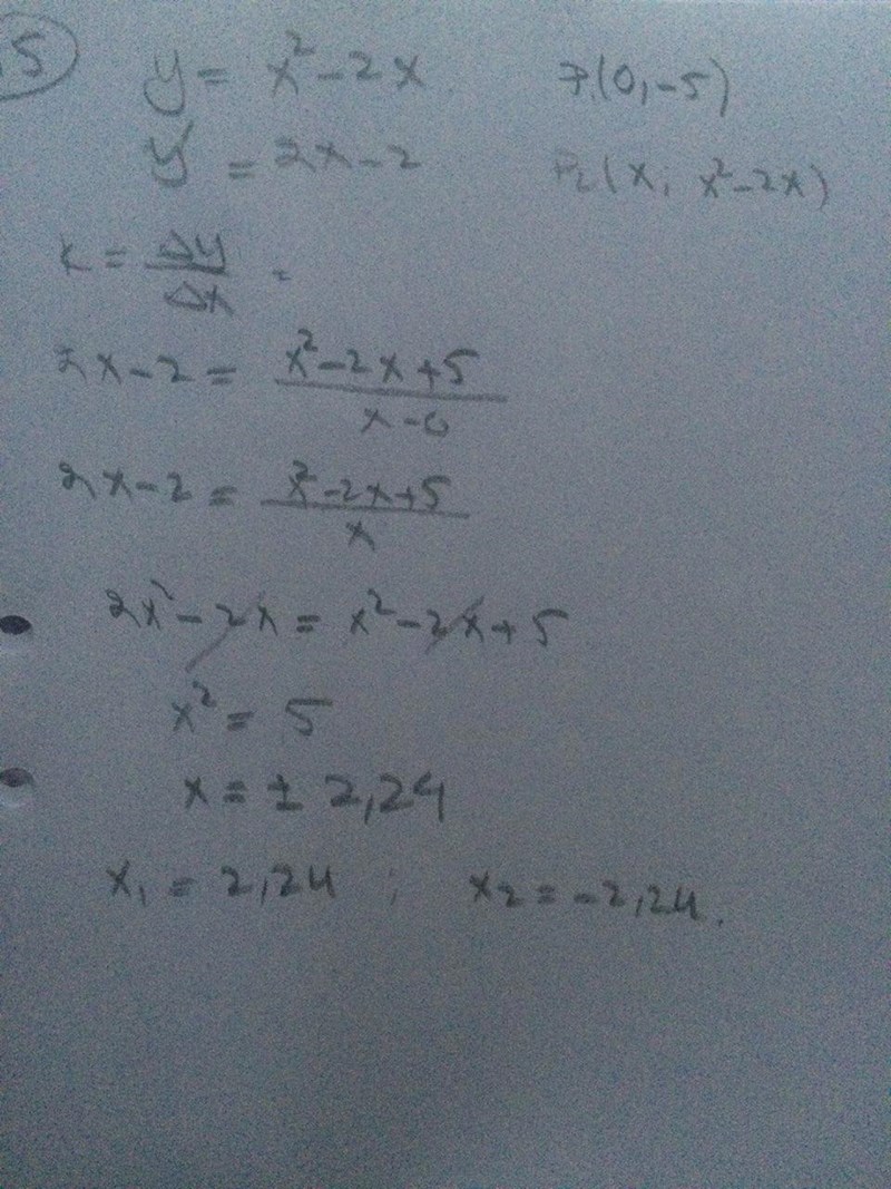 två tangenter till kurvan y=x^2-2x skär varandra i punkten (0,-5). bestäm de två tangenringspunkterna.