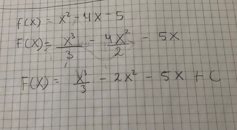 F(x)= (x^3/3) -(2x^2)-5x+C