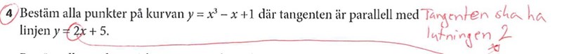 Börja med att ta reda på var kurvan y= x3-x+1 har lutningen 2.