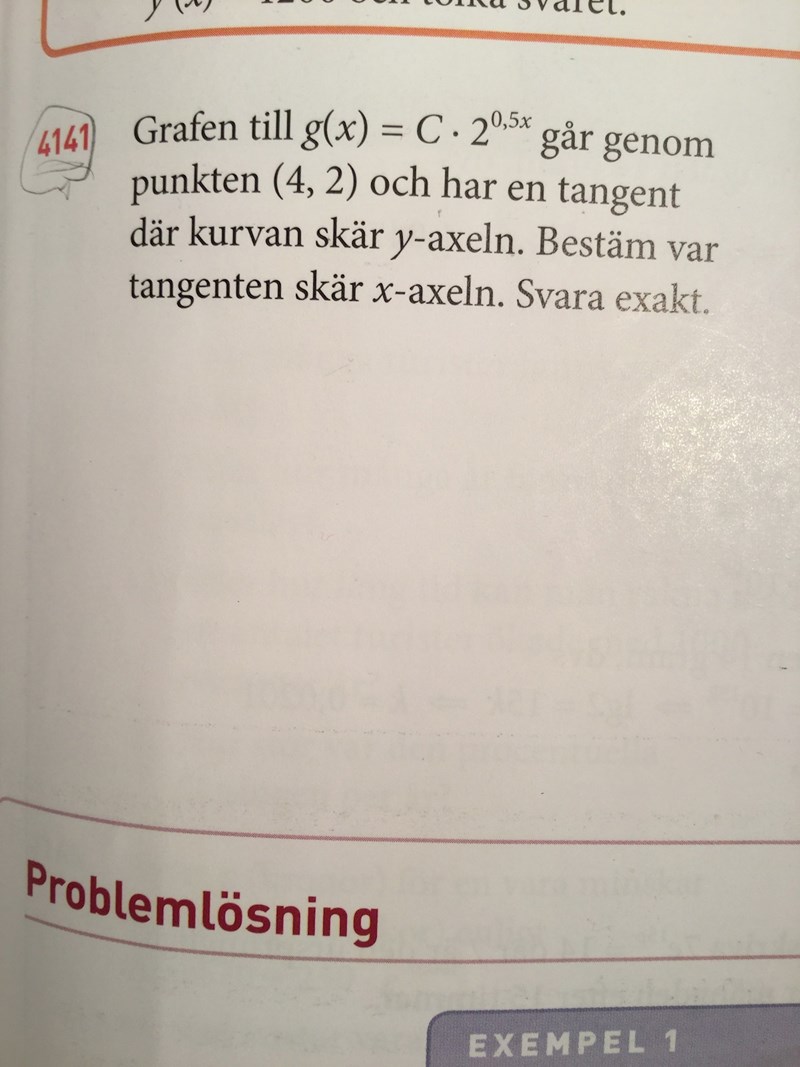 Nu vill jag bestämma den räta linjens ekvation för tangenten men det går inte så bra.