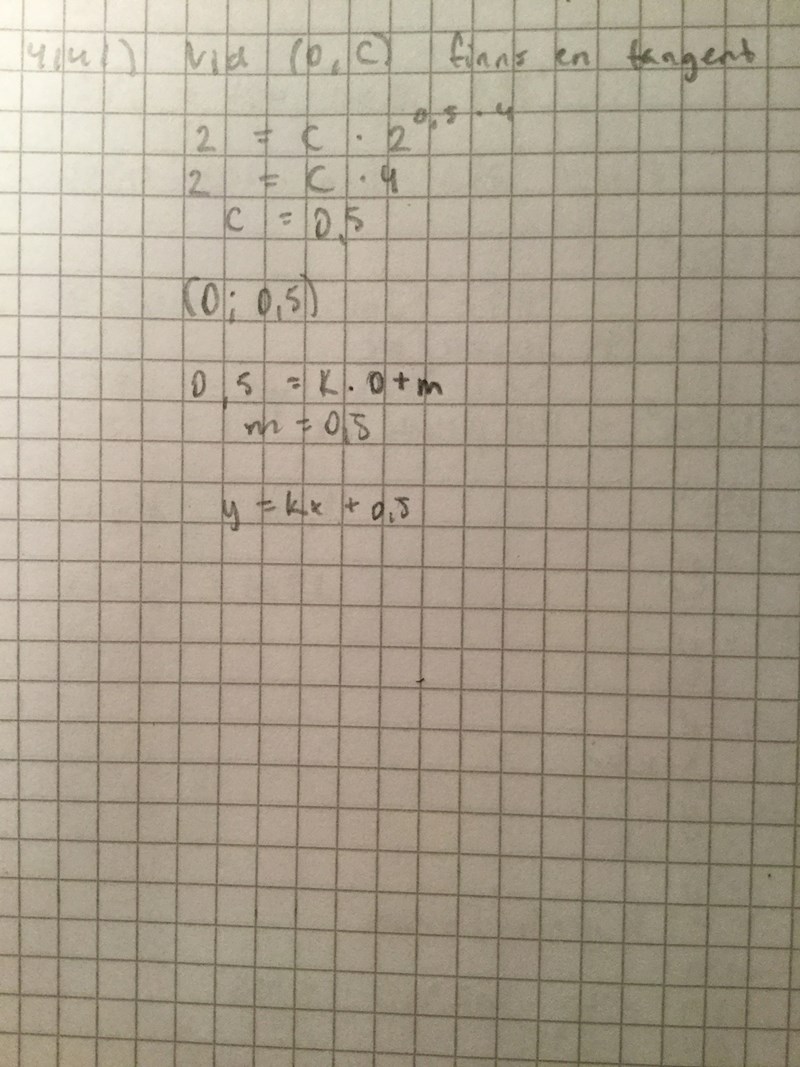 Ser väl bra ut men du behöver bestämma k också ... alltså lutningen på tangenten.