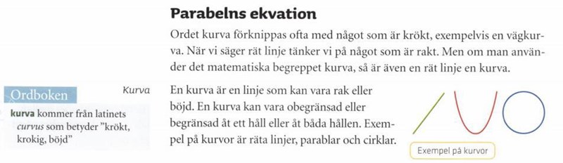 Hänvisa till en populär mattebok upp till matte 3. bok där man definierar en kurva på sådant sätt. Bevisa din teori.