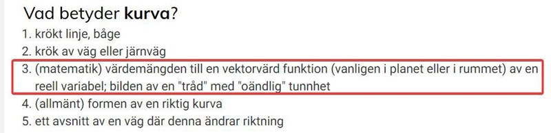 Jag vet nu hädanefter att det finns en matematisk definition på ordet kurva och att det är så man bör uttrycka sig när man pratar om matematik på svenska. Jag visste inte det innan. Och jag har heller inte blivit informerad om det.