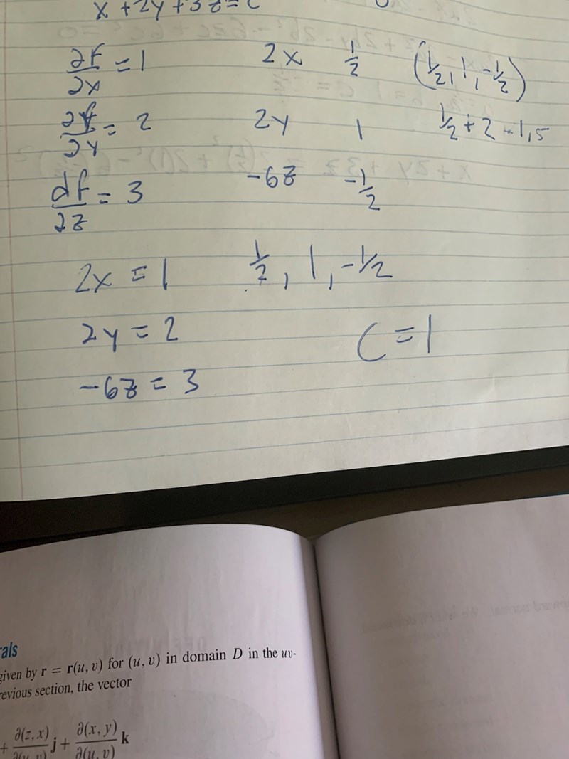 Vektorn (2x, 2y, -6z) skall vara parallell med vektorn (1, 2, 3), men inte nödvändigtvis lika med denna vektor.