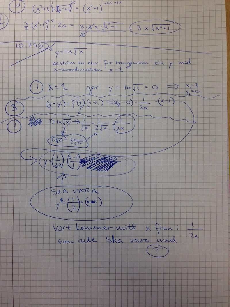 Tack - glömde biten med att stoppa in 1 i derivatan! :)
