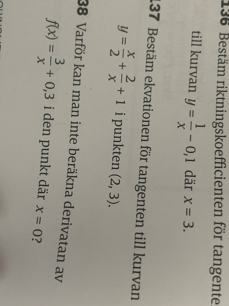 Jag löste den, men jag förstår inte punkten 2,0 eftersom den ligger på funktionen inte på tangenten