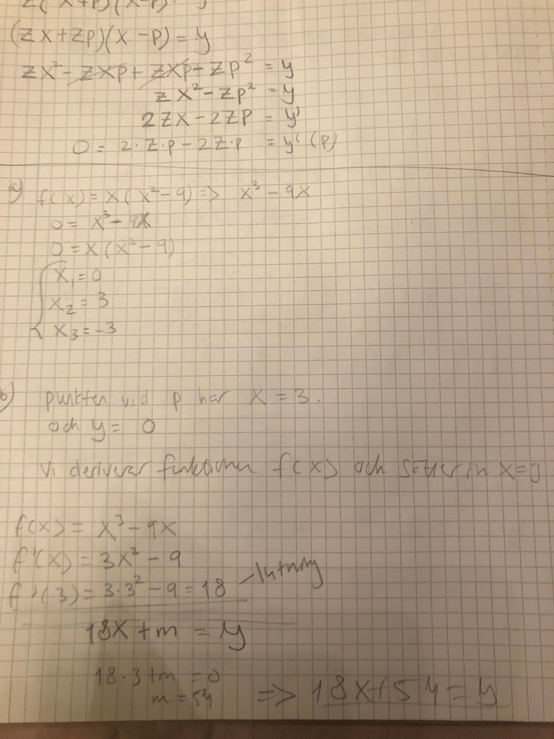 Lisa14500 skrev:För jag satte in punkten (3,0) i funktionen y=18x+m därefter löste jag ut m som blev 54. Är det rätt?