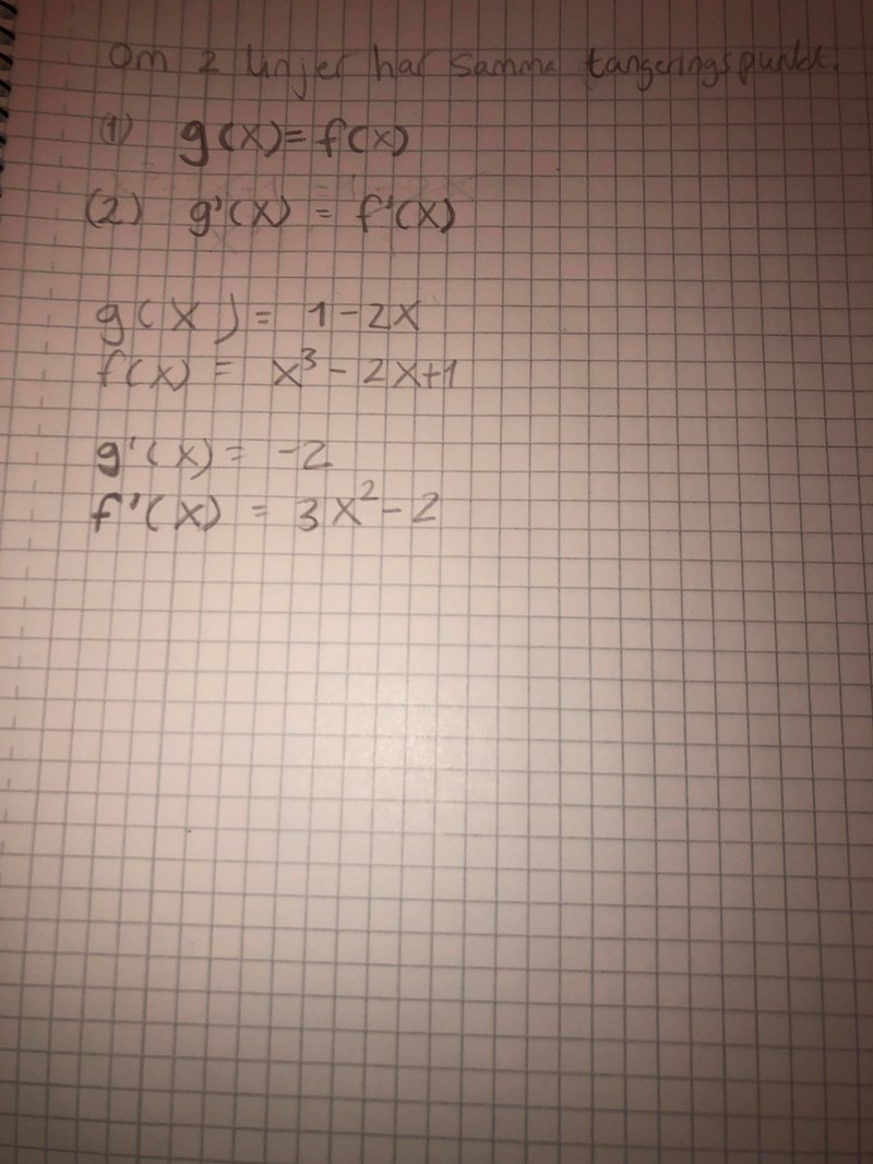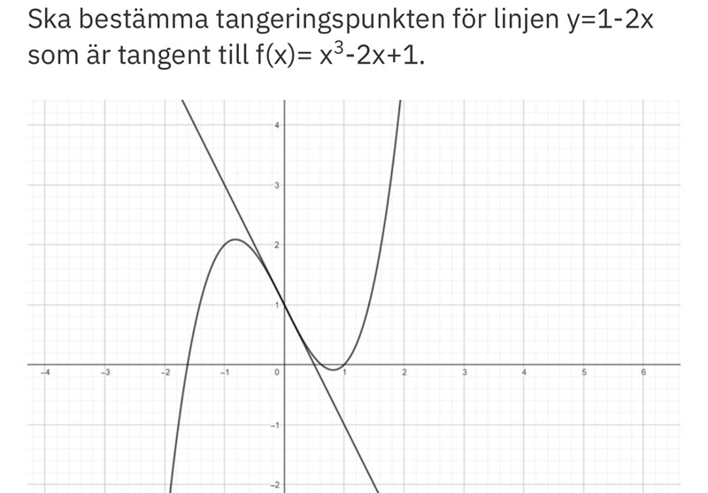 För vilket x har funktionen f(x) derivata-värdet -2 ?