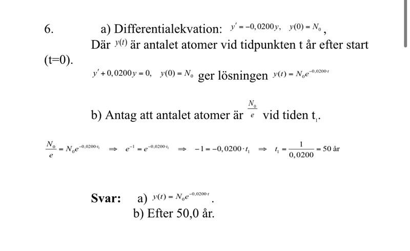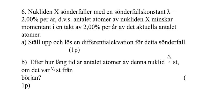 om frågan skulle lyda ” antalet atomer av nukliden X ÖKAR momentant i en takt av 2 % per år av den aktuella antalet atomer” a ställ upp och lös differentialekvationen för detta sönderfall. Hur hade jag då ställt upp differentialekvationen? Facit har multiplicerat y med -0,02 jag trodde nämligen att man skulle multiplicera y med 0,02 i den riktiga uppgiften dvs då X minskar. Tack på förhand !!