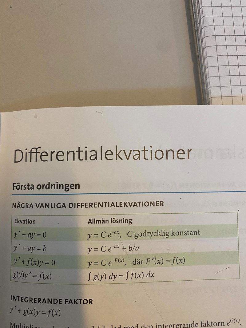 Okej tack! Vad ska jag multiplicera y med om jag vill använda mig av formeln för en homogen difekvation av första ordningen. Meningen är att man ska lösa uppgiften utan räknare tror inte att jag skulle kunna lösa ekvationen som du skrev utan räknare
