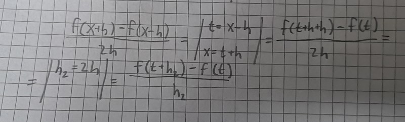 Du känner redan till differenskvoten (f(x+h)-f(x))/h, s.k. framåtdifferenskvot, och det finns även en bakåtdifferenskvot som ser ut så här: (f(x)-f(x-h))/h