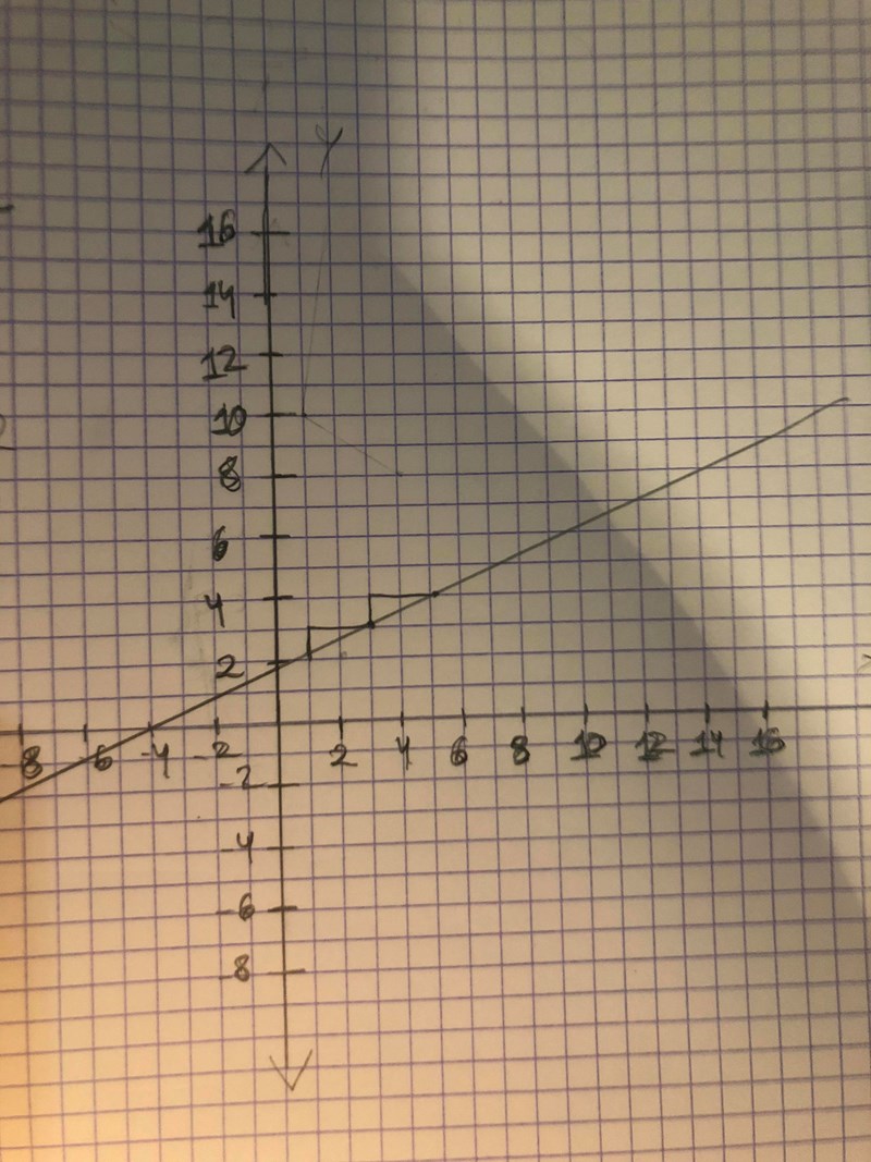 först så ritade jag ett koordinatsystem, för varje 1 steg åt höger i x-axeln ritade jag ett steg uppåt för y-axeln. Jag valde 2 punkter (3,3) och (5,4)