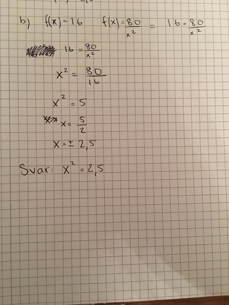 Ska såklart vara Svar: X = +/-2,5