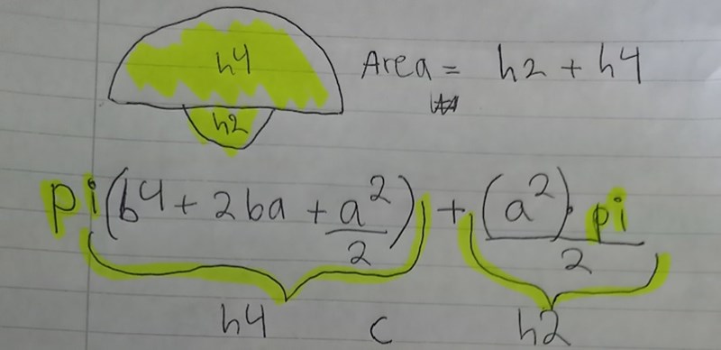 - Nu adderar jag uttrycket för arean på h4 med uttrycket för arean på h2.