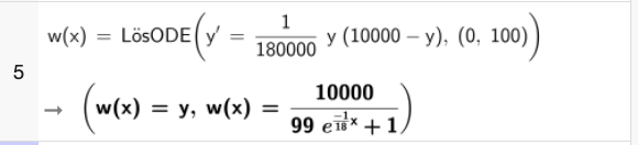 Alltså är differentialekvationen: y’ = (1 / 180000) * y * (10000 − y)