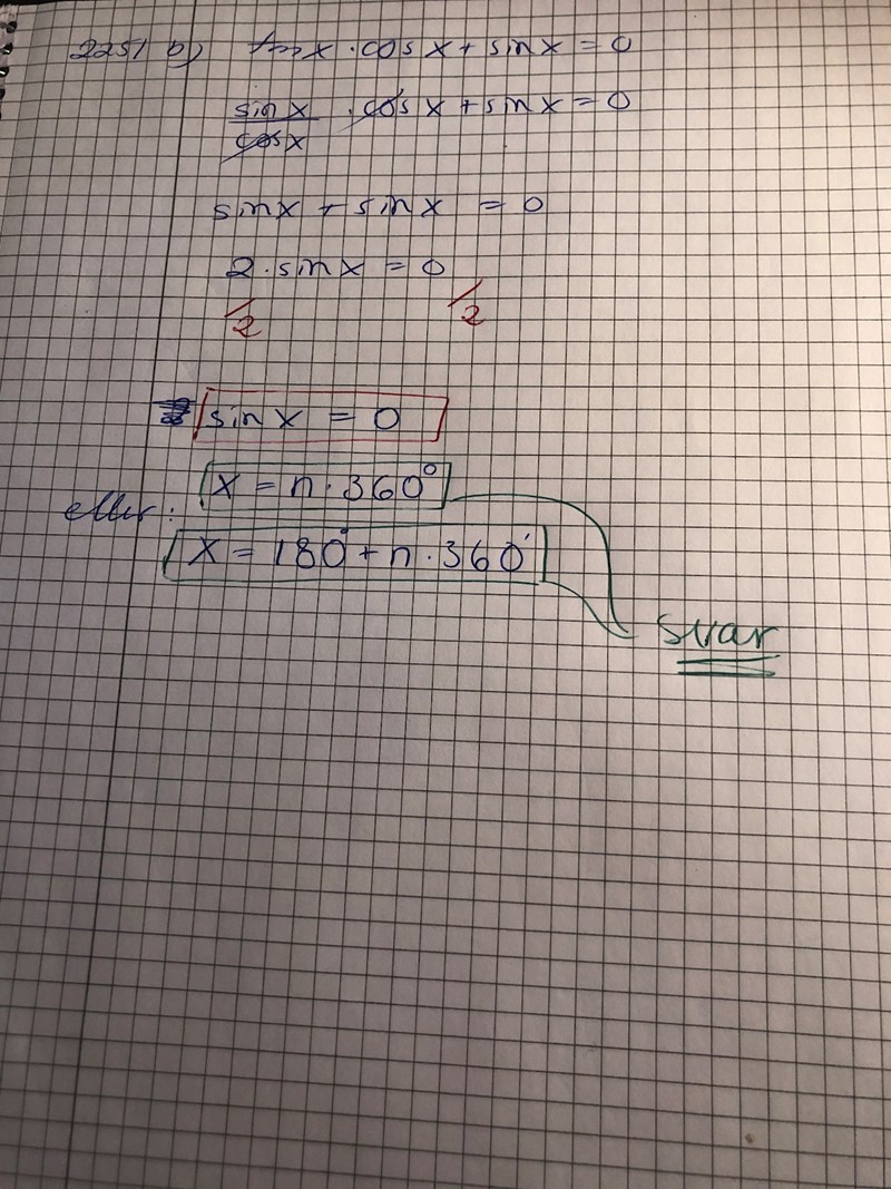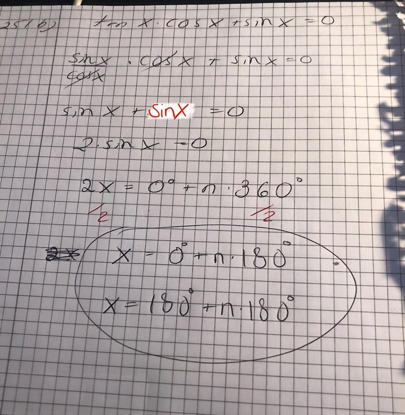 Blir det då 2x= 0 + n• 360 dvs x= n•180?