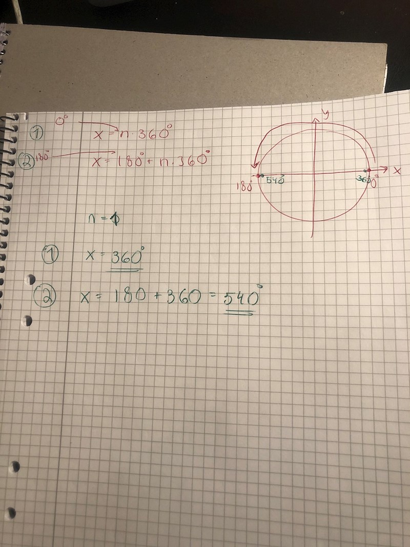 jag får att 0 grader= 360 grader, och 180 grader= 540 grader.