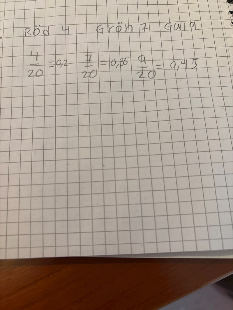 I en låda ligger 4 röda, 7 gröna och 9 gula kulor. Maja tar slumpmässigt upp en kula. Hur stor är sannolikheten att kulan är grön svara i procentform?