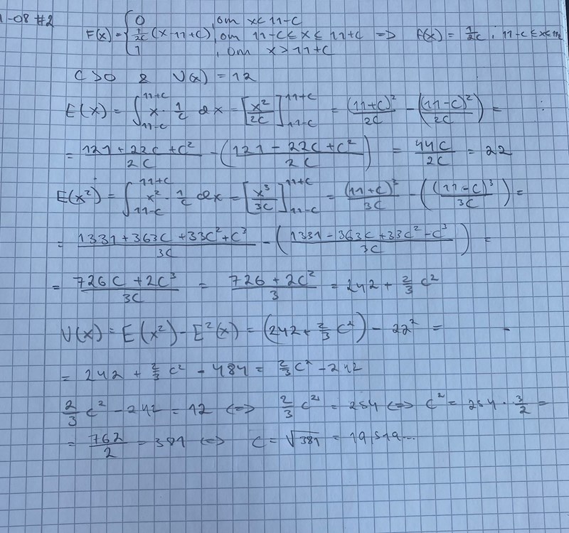 Varför räknar du med f(x) = 1/c?