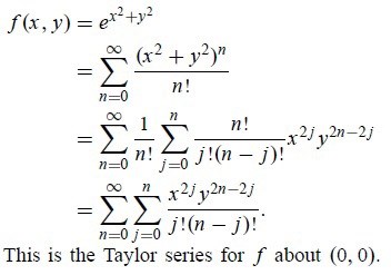 Hitta Taylor-serien för den givna funktionen kring punkten (0, 0)