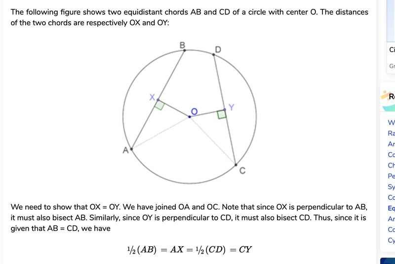 Jag håller på att studera "Equal chords of a circle are equidistant from its center."