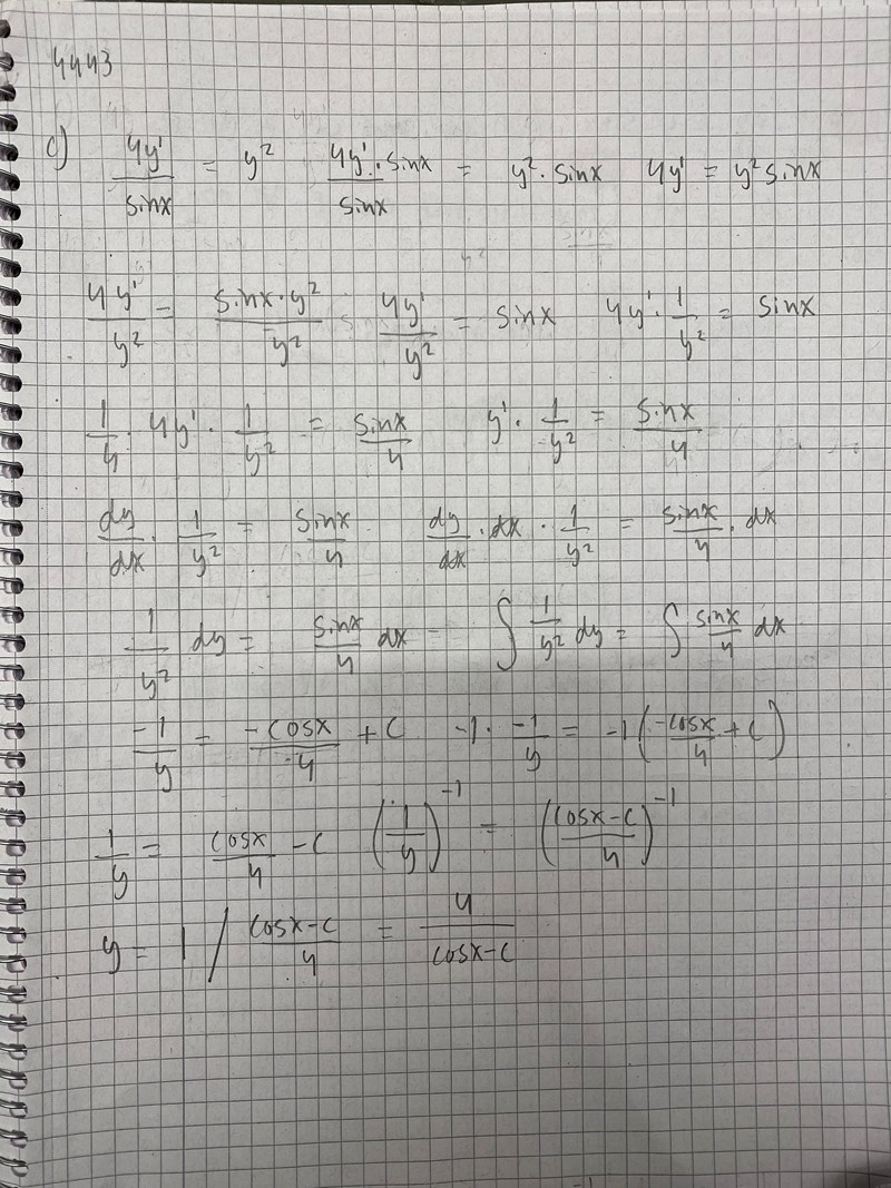 Hej! På uppgift c så får jag samma svar som facit men konstanten C enligt mina beräkningar är negativ medan facit menar på att konstanten C är positiv. Varför blir det fel? Tack på förhand!!!