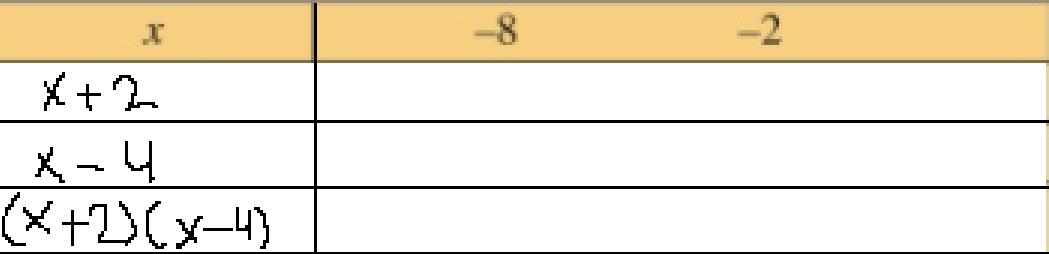 Nu vill jag bilda ett teckenschema för att fortsätta denna uträkning, jag har gjort på detta vis
