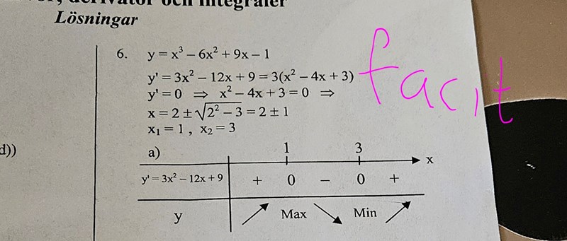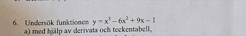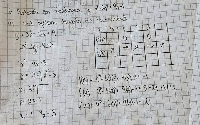 Bubo skrev:Det är derivatans värde mellan extrempunkterna som du vill ha, inte funktionens värde.