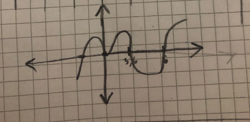 Du kan lätt hitta tre nollställen till f(x) = (x3/3)(6-x)2. (Det finns två komplexa nollställen också, men dem bryr vi oss inte om).