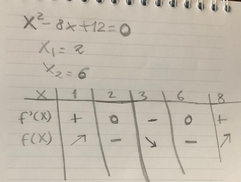 Men hur kände du igen att x = 3,6 gav just en maxpunkt och att x = 6 gav just en minpunkt?