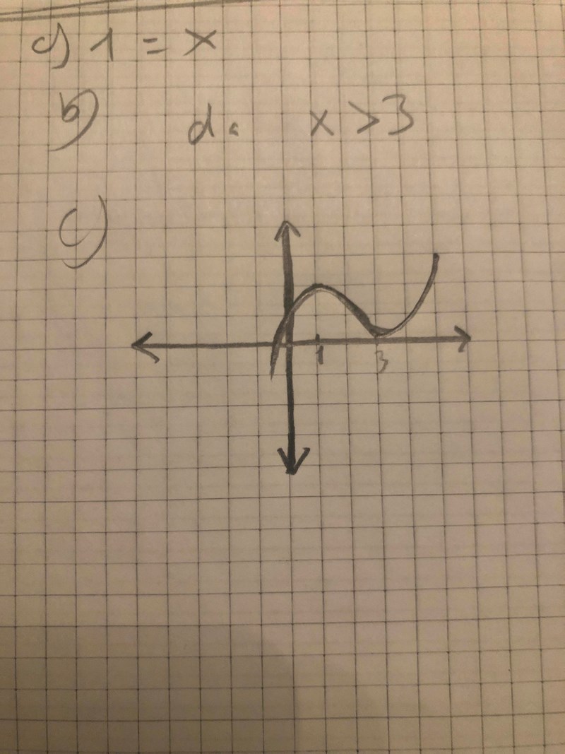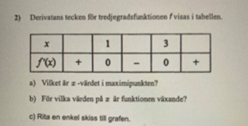 En liten detalj är att funktionen är växande även där derivatan är lika med 0.