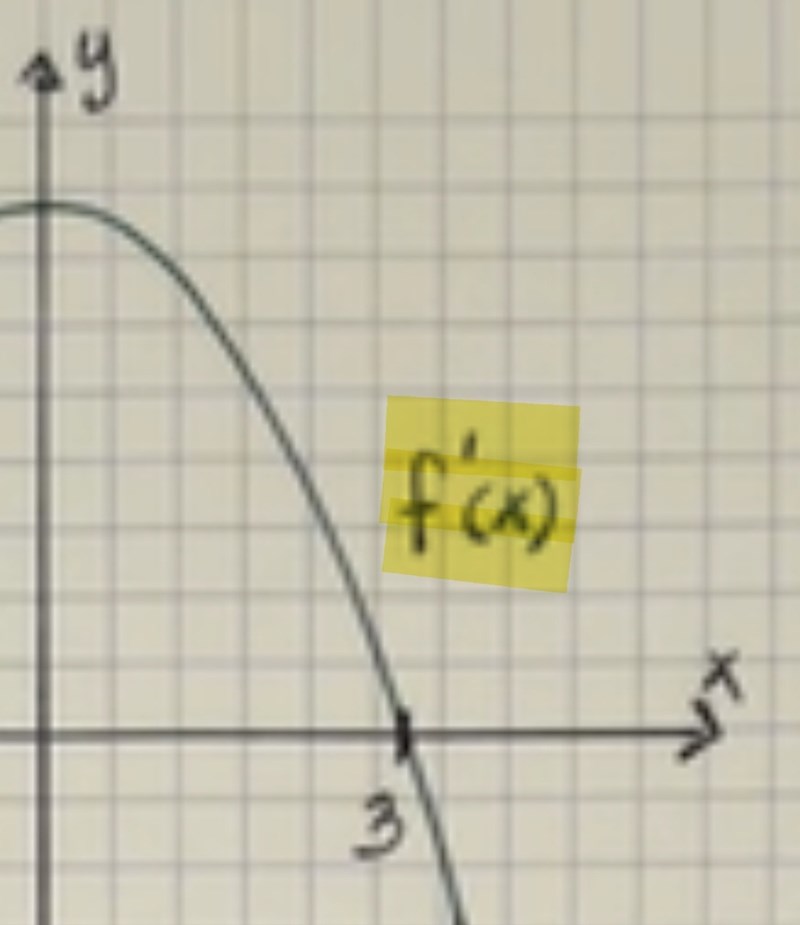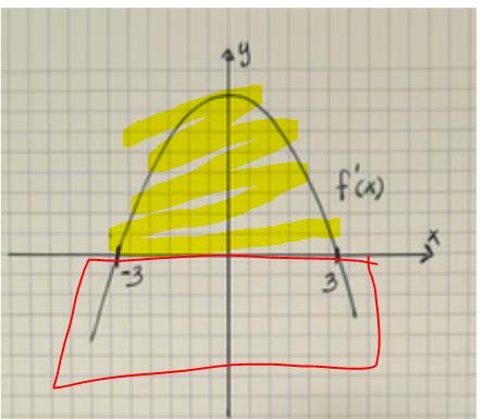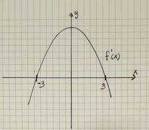 jaha, så egentligen kan man säga att eftersom det är en f'(x) graf så kan man dra slutsatsen att över x-ledet så är det +, under x-led är det - och på x-ledet är derivatan 0.
