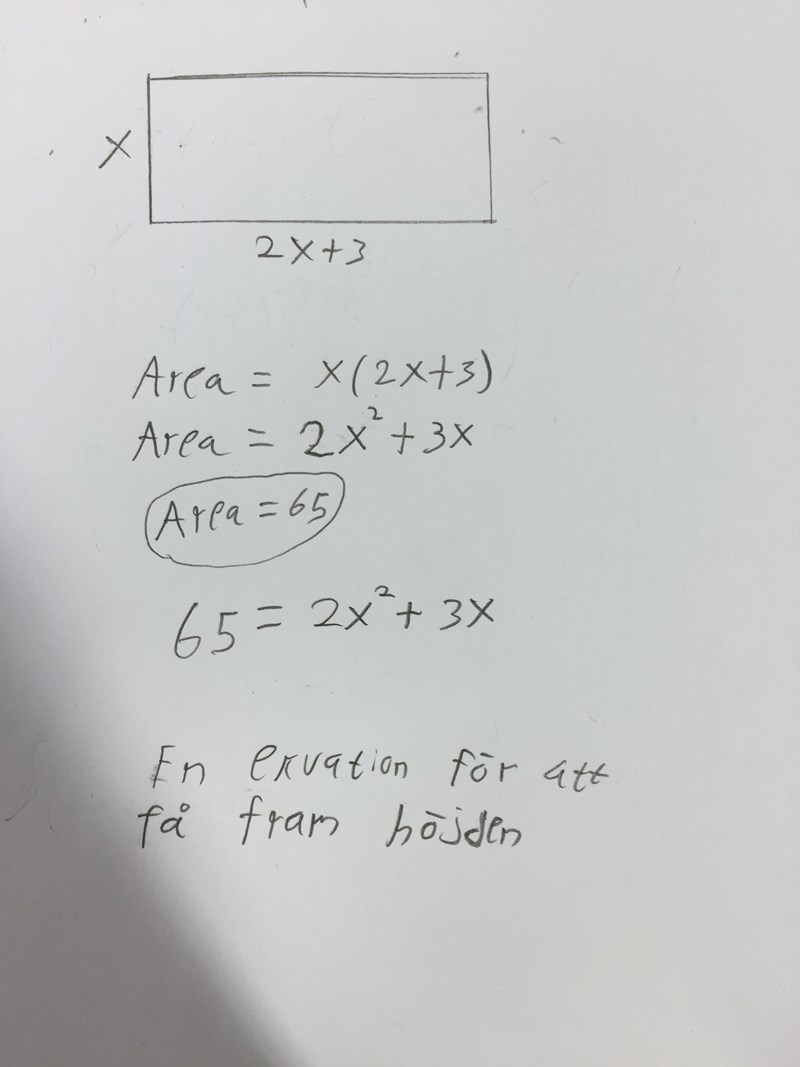 matildafolke skrev :man ska teckna en ekvation som kan användas för att beräkna rektangelns höjd.