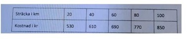 b) Teckna en funktion som visar hur kosstnaden (y) beror av antalet kilometer (x).