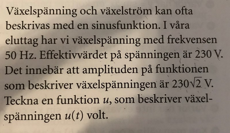 Man tar hänsyn till att spänningens effektivvärde är 230 V.