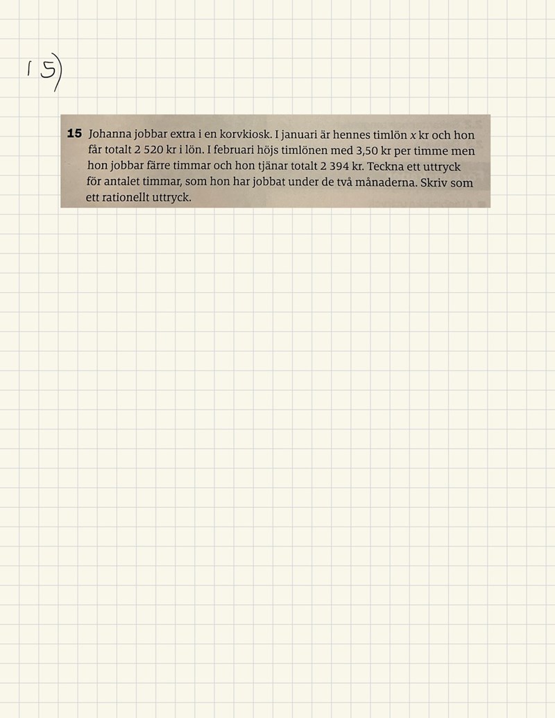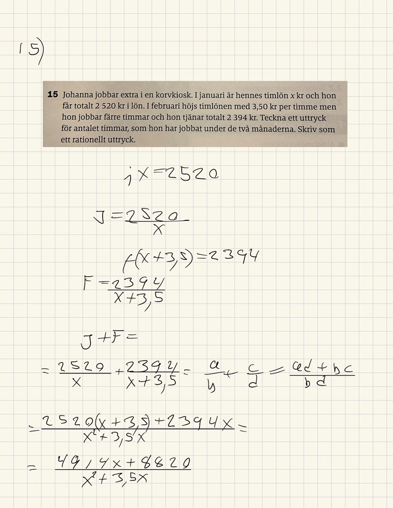Teckna ett rationellt uttryck för antal timmar som hon jobbat under 2 mån.