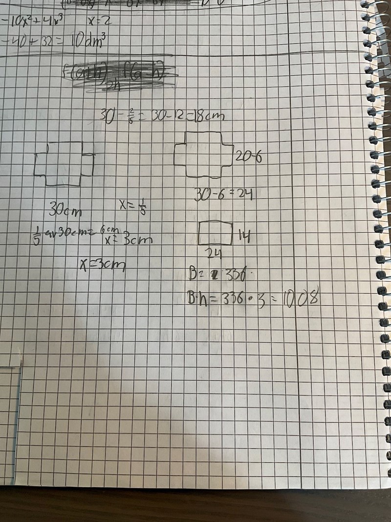 Sidan på x är 3cm.30-2/5 är fel, ska stå 2/10 istället.