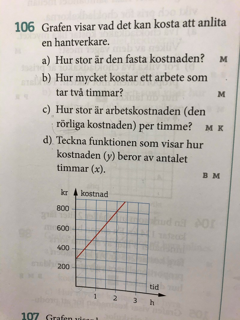 k är svaret på c), hur mycket y ändras om x ökar med 1. Kostnaden per timme. Den är inte 400.