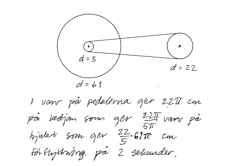 a. vilken hastighet cyklar du i om du trampar ett varv på två sekunder?