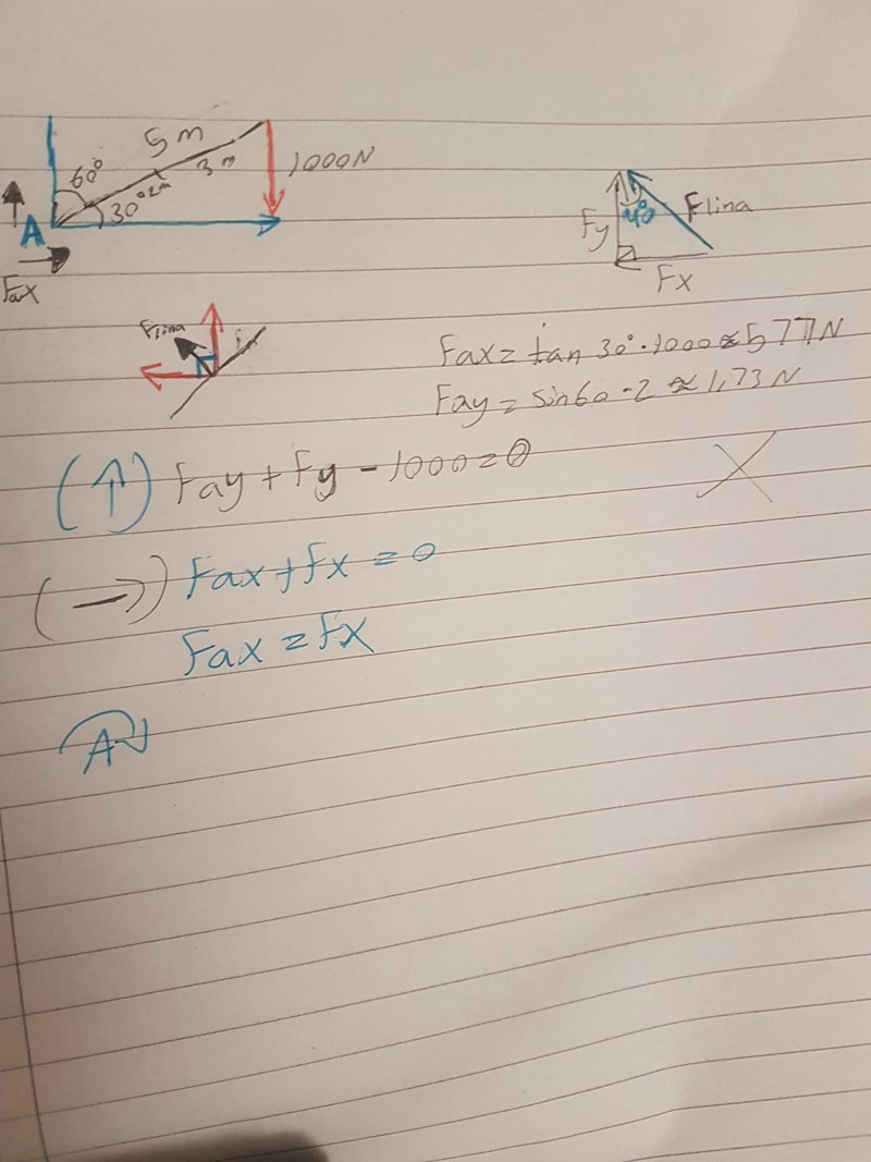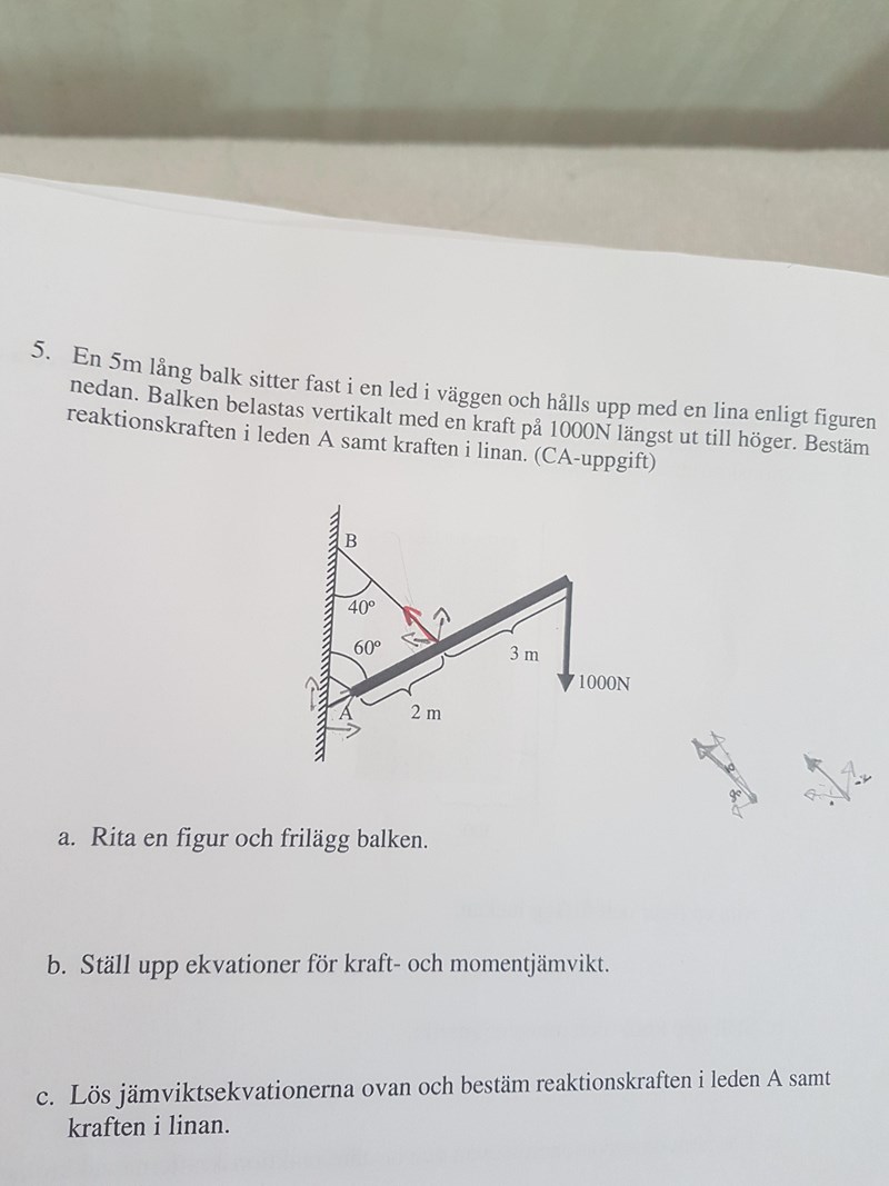 För att ber momentjämnvikt ska du komposantuopdela de krafter som verkar på balken.